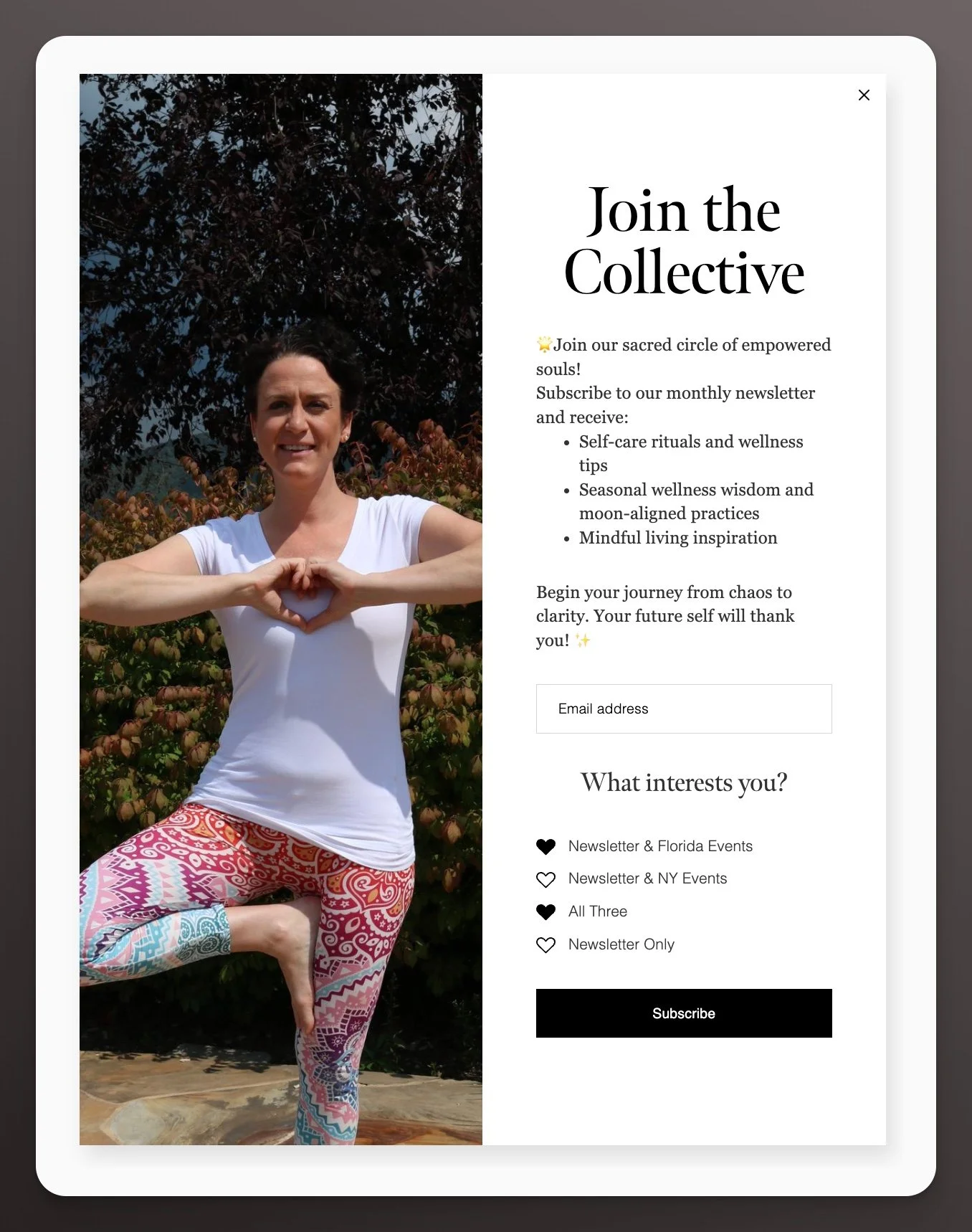 Tracy had been using Zoho for her forms, sales, and email newsletter, and it wasn’t serving her business in the way she needed. She decided to switch to Flodesk, and the move involved migrating her extensive list of subscribers, along with tags and details, and creating several new signup forms and automated workflows to nurture leads. I implemented all Flodesk setup and adding the forms, including this cute pop-up, onto her rebranded website.