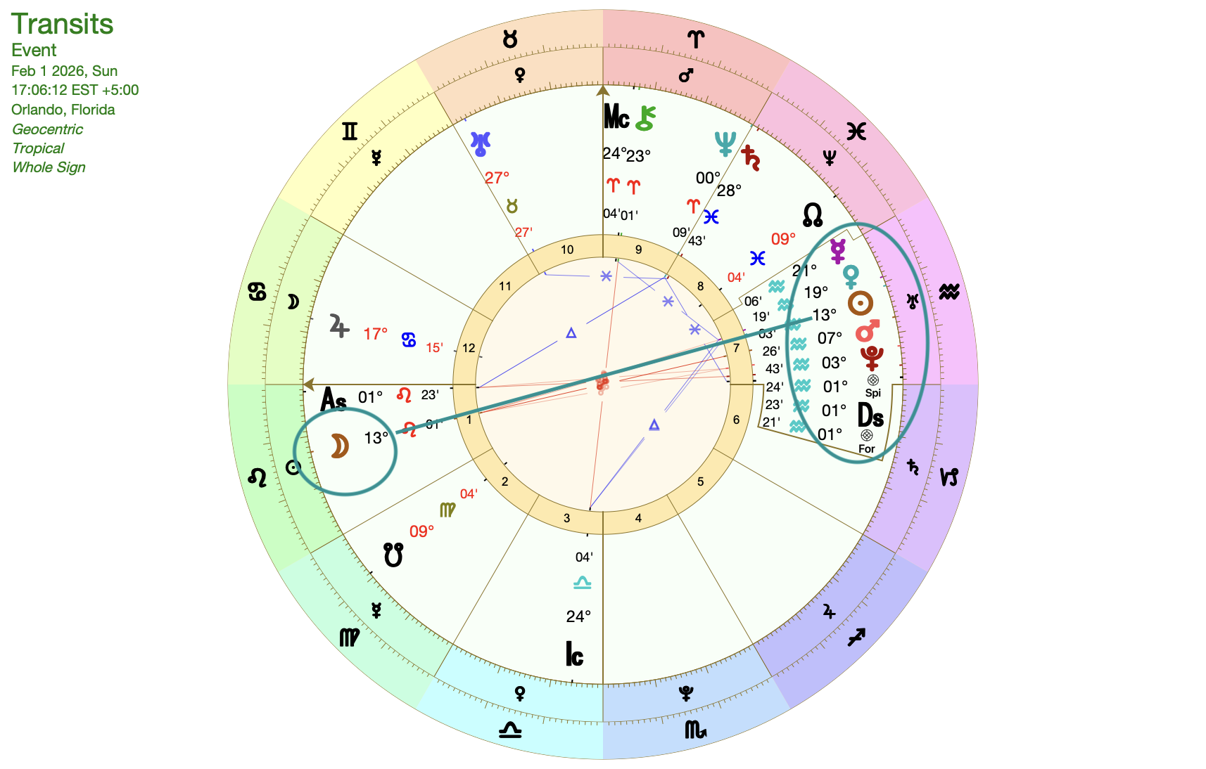February 1, 2026—Snow Full Moon opposes Aquarian Stellium that includes Jupiter & Mars conjunction 4° orb, Mars & Sun conjunction, Sun & Venus conjunction 6° orb, and Venus & Mercury conjunction with 2° orb.