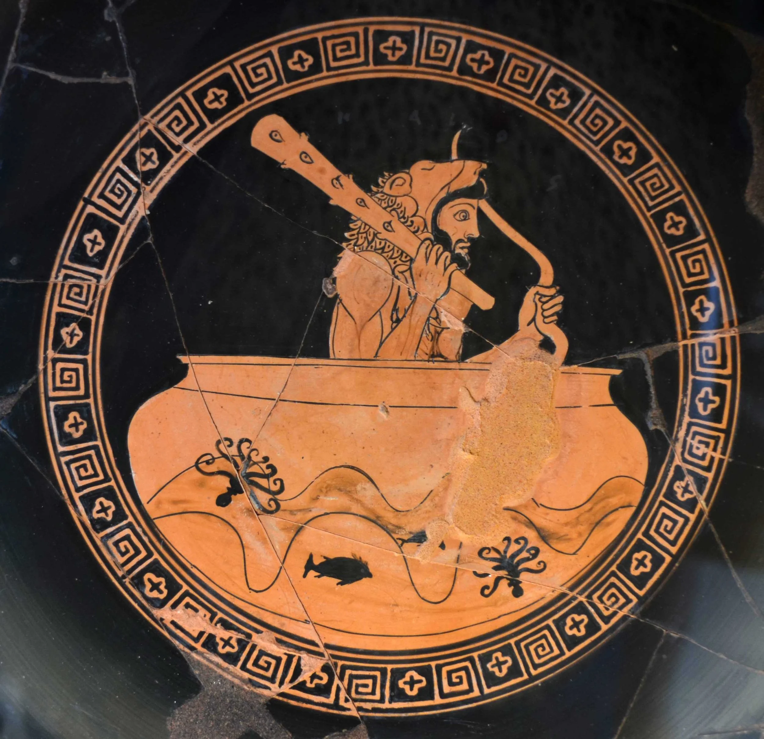 By Pompilos, Helios's cup with Heracles in it, Rome, Museo Gregoriano Etrusco via Wikimedia Commons